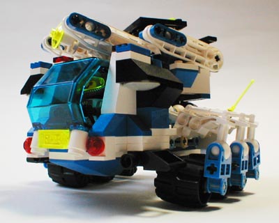 | スライザーのパーツをメインに使用。 またしても多脚戦車・・・ 今回のイメージソースは 映画「アルマゲドン」に出てきた「アルマジロ」という工作車です。 ビデオで1回見ただけなのでたぶん全然形違います・・・ とりあえず足廻りがこんなだった気が・・・ この足廻りの組み方をけっこう色々と悩んだのですが、 スライザーのパーツを使う事であっさりと解決(^^; これを作るためにアイススライザーを2個購入。 砲塔内にもスライザーの胴体?パーツを2個使っています。 |