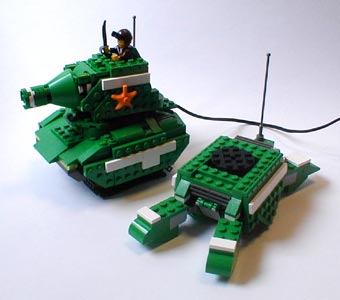 | スカートをめくるとこんな感じ。 そう、戦車型の方はリモコンで走るのだ〜〜 |