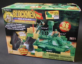 軍隊物というコンセプトは割りと好きなのですが (LEGO製品じゃ考えられないしね)、 メガブロックと同様にパーツの合いが悪く、 パーツの種類も少ないのが難点。 ついている人形は割りと良く出来ています。 |
