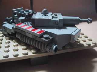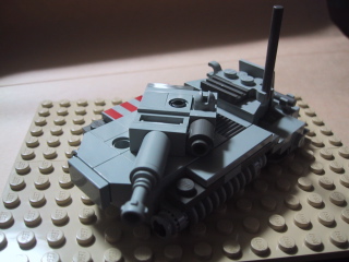 | 設定 惑星ノーマッドのメタンの泥濘地で活動するために開発された戦闘車両。 惑星ノーマッドはメタンの氷原はノコギリ状に凍結したメタンと シャーベット状のメタンが混ざり合っており、 通常のキャタピラやホバーでは 対応出来ないため本車が使われている。 写真の物は車体右部の赤のストライプから 第二機甲大隊所属の車両と推測される。 |