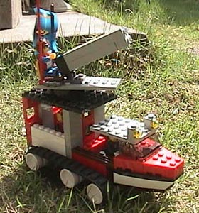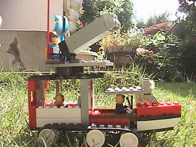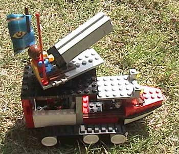キャタピラのトラックに対空砲が、とり付けられている。 後ろに情報員が使っているパソコンは、敵軍の接近を感知できる高性能レーダーとつながっている。 また、運転席の上に付いているフラッシュライトは、敵機に向かってパチパチ、フラッシュライトを 点滅させて目をくらまし、そのすきに対空砲で、ドッカーン!っと、やってしまう。 対空砲は、0〜90°まで、角度を変えられる 装備 4連射特大対空砲×1 高性能敵機接近感知レーダー×1 フラッシュライト×2 定員・3名 |