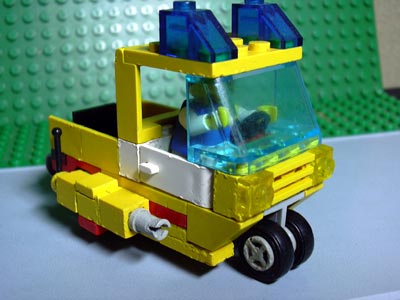 | 設定 もともと,市販されている三輪トラックを四輪に改造しただけの輸送用トラックだったが、 輸送車両への襲撃が多くなったためマシンガンを標準装備としている。 一部の地域では、前線でこの戦車を使用している。 ビッグスロープエンジン社製特別警察隊工場にて改造 USLC(レゴシティ合衆国)暦1998登録。 武装 0.5ポッチマシンガンx1 |