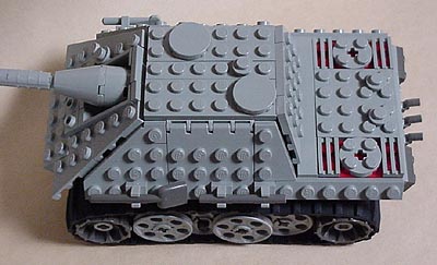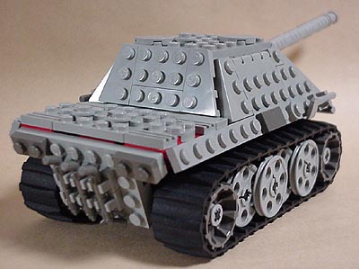 かなりデフォルメされたミニ戦車といった感じですが、 マインドストームなどのセットに含まれる ゴム製のキャタピラの大きさを基準にして、 ヤークト・パンサーの資料を参考にしながら作ってみました。 将来的には、モーターを入れて動かしたいところです。 |