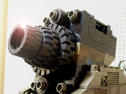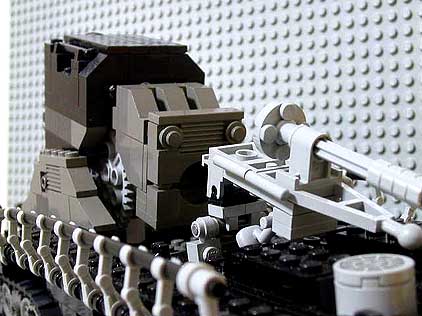 | 製作者 CTR さん のコメント キャタピラ回らないし、形も違うので このくらいやんなきゃなぁ〜と 「衝撃吸収機構(2ポッチ後に動きます)」を作り ハンドルで角度が付けられるようにしてみた。 |