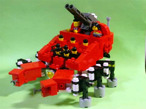 | 製作者 CTR さん のコメント 多脚戦車+赤い(雛壇のため)というと どうしてもフチコマを連想してしまいまして ”あえて”フチコマを断ち切ることなく 流れに任せて組んで見ました。 |