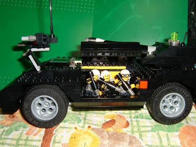 | 設定 兵装 60ミリ4連装粒子レーザー砲 1門 40ミリ機動レーザー砲 2門 兵員 乗員・兵員合わせ10名 改造点 スコーピオンU 車体全体を一回り小さく、車高を下げた。 砲塔をコンパクトにし、装甲を強化、 操縦席の視界を広くし、正面装甲の強化 車体前方に、2門の機動伸縮砲を設置、 対歩兵戦強化、ただし側面の兵員乗降口、 兵員室の縮小の結果、搭乗員数4名減 高速機動で戦場を縦横無尽に走り回り、 敵装甲車両に対し粒子砲で一撃を加え ていく姿は、まさに蠍(スコーピオン)である。 |