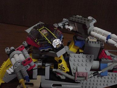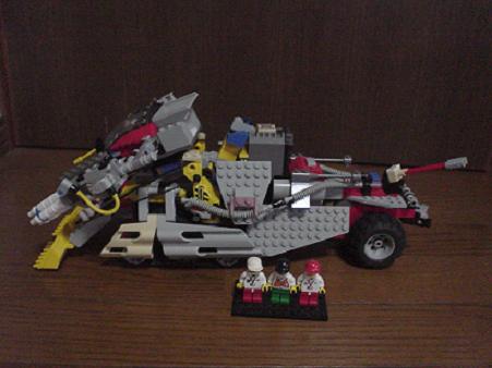 製作者 20-XZ さん のコメント 朝、目が覚めたら突然ひらめいて、早速作ることにしたんです。 が、それはものすごく小さい物で、人も乗れなかったんですが、 「これじゃつまらない」と色んな部品を付けていくうちに、 画像の半分の大きさになりました。 それでもまだ飽き足らず、大きくしていったら、出来ました。 失敗点・・・大きいのに1人しか入れない。 や、荷物など入りますが、スペースが小さすぎて、 ろくな物が入りません。 |