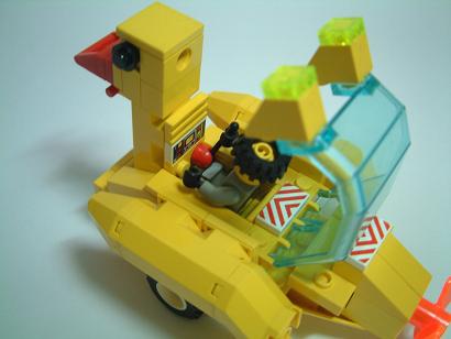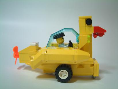 | 設定 巷で話題の黄色いボランティア軍団「あひる部隊」の主力戦車であり、 以前は田んぼや畑で害虫駆除など『万能農業機械』として使われていたもの改造して作った。 側部にロケットエンジン、後方には超高速回転スクリューを搭載。 目のような部分には高性能レーダー装置が搭載されておりハエ一匹見逃さない。 武器は、口からでる高圧力水鉄砲のほかに、 左右のバナナボートのような部分にはロケットエンジンと一緒に『アヒルガン』が備わっている。 今日もどこかで他の仲間と共に世のため人のために活動を続けているようだ。 |