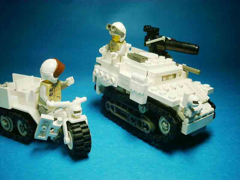 | 設定 レゴ陸軍空挺部隊用に開発された超小型装軌装甲車。 目的に応じて、 対戦車ミサイル、40mm自動擲弾銃、12.7mm重機関銃など、 各種バリエーションがある。 |