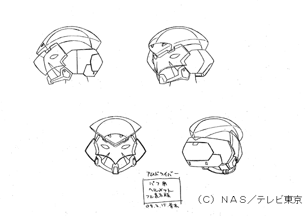 オモチャが発売されているジェナス、ラグナ、セラ、シーン、ダークのヘルメットはコンセプトデザインの宮崎さんが元デザイン。 ここで公開しているアニメにしか登場予定が無いヘルメットは世界観に合わせ、私がデザインしています。