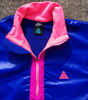 初期acgウェアに見られる長方形タグがついています。最近acgウェアは古着屋でもけっこう出回るようになってきましたが、これはデッドで3000円くらいで見つけました。ラッキー!ちなみにこの赤紫、ピンク、青という配色は、当時のacgウェアによく見られる配色で、この色使いのフリースやアウタージャケットなどをいくつか所有しています。派手ですけどね、最近こういうのを着てハイキングに出かけて、同じようにハイキングしている人達にacgをアピールしております。安くて良質な現代のACGをもっと知ってもらいたくて。特にスポーツで使う人に。そのためにはカッコ良く着こなしたいといつも思っています。その方が説得力があるから。着こなし方によって良いモノも悪いモノに見えることだってある。がんばりますので、これからもHATAKEを宜しく。 |