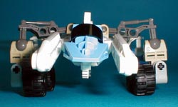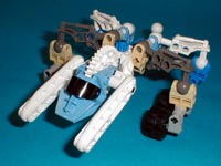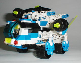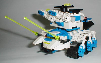 | スライザーのパーツをメインに使用。 またしても多脚戦車・・・ 今回のイメージソースは 映画「アルマゲドン」に出てきた「アルマジロ」という工作車です。 ビデオで1回見ただけなのでたぶん全然形違います・・・ とりあえず足廻りがこんなだった気が・・・ この足廻りの組み方をけっこう色々と悩んだのですが、 スライザーのパーツを使う事であっさりと解決(^^; これを作るためにアイススライザーを2個購入。 砲塔内にもスライザーの胴体?パーツを2個使っています。 |