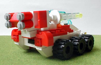 | パンツァー・イェーガーは複雑な構造の上に余りにも高額な兵器であった。 パイロットの育成にも時間が掛かるため、 可動率も60%という低い数字にしかならなかった。 対BEM戦とはいえ必要数を揃える事は、 不可能と判断した政府は急遽、 パンツァー・イェーガーをサポートする 戦闘車両の試作をメーカーに要求した。 その結果提示されたのが本車両である。 デモンストレーション用のため、 塗装は派手目に行われている。 |