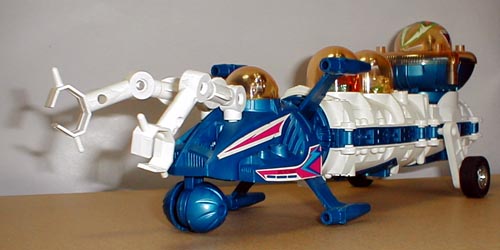 アドベンチャーワゴン もー一つはずせないのがこの形態。 上の形態と同時に作っておけば、 車輪と円盤部のコンバートのみで、 両方同時に楽しめるとゆー訳です。 一回で二度おいしいというヤツ・・・ |